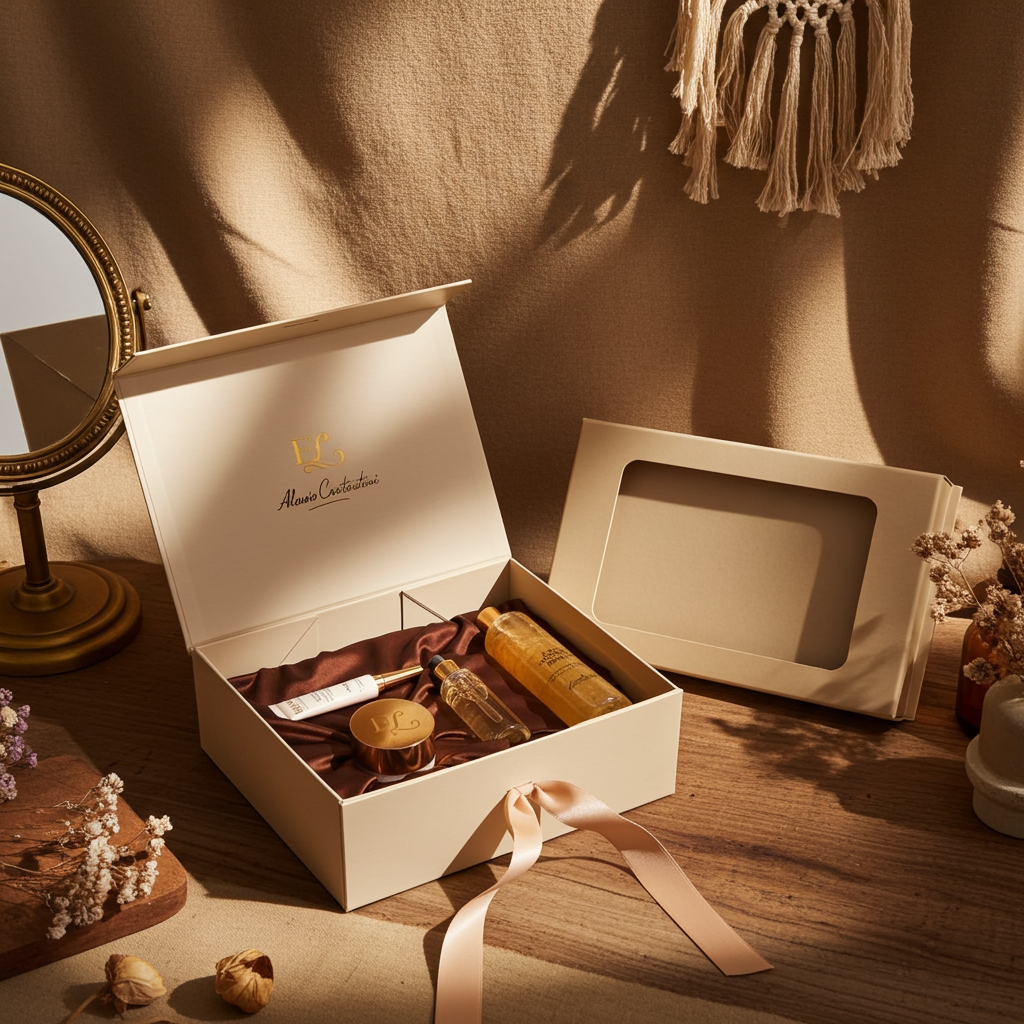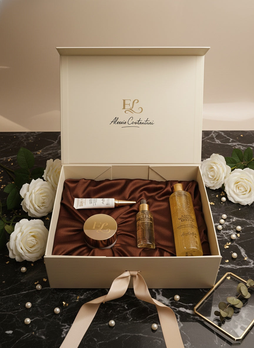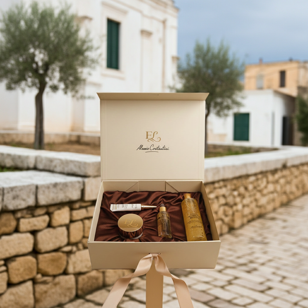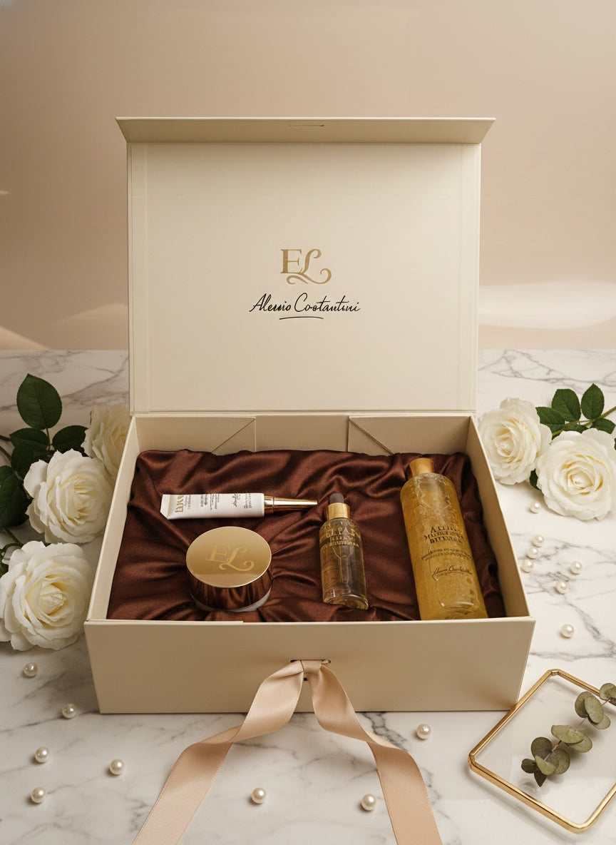 Set skincare completo anti-macchia in confezione regalo (cartoncino avorio con nastro champagne)